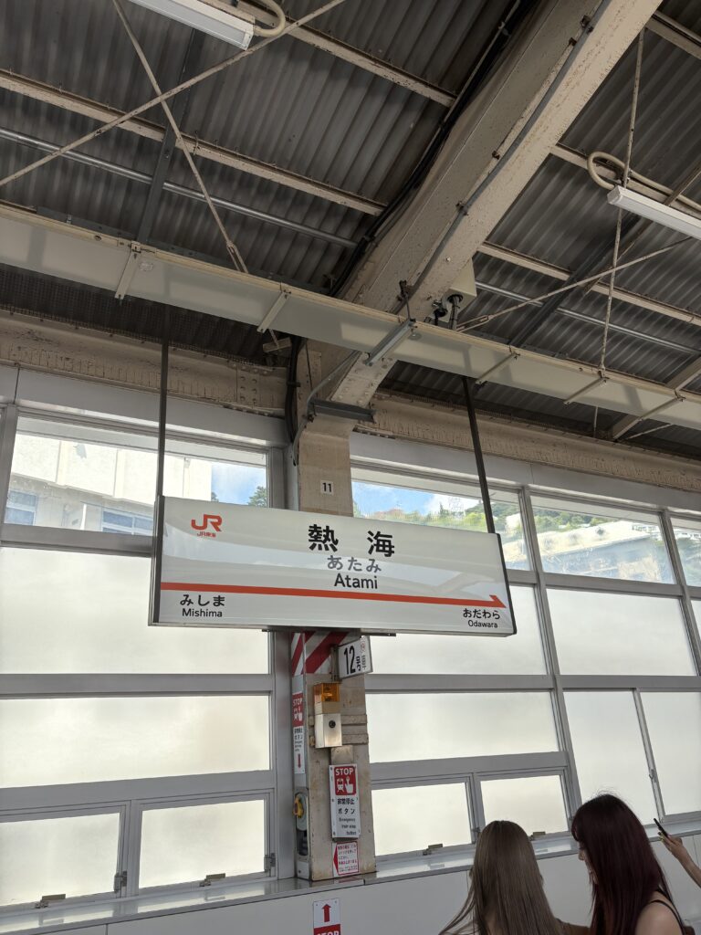 関西(大阪・京都など)から熱海まで新幹線で約3時間。正直、移動時間は長かったですが、熱海駅に着いた瞬間にその疲れは吹き飛びました!駅前のレトロな雰囲気が、一気に非日常へと連れて行ってくれます。普段は新幹線から富士山が見えるのですが、生憎の曇り。寝ることが好きなので、行きの新幹線は全て寝ていました。(笑)