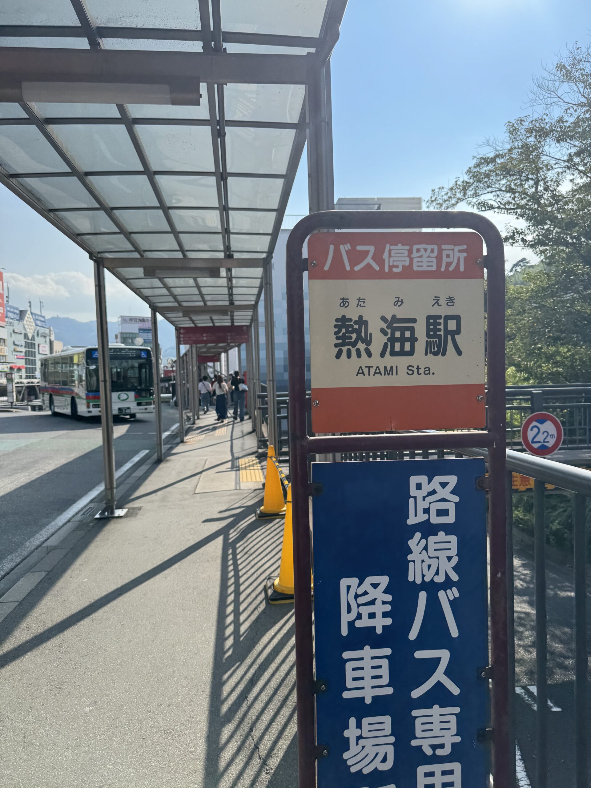関西(大阪・京都など)から熱海まで新幹線で約3時間。正直、移動時間は長かったですが、熱海駅に着いた瞬間にその疲れは吹き飛びました!駅前のレトロな雰囲気が、一気に非日常へと連れて行ってくれます。普段は新幹線から富士山が見えるのですが、生憎の曇り。寝ることが好きなので、行きの新幹線は全て寝ていました。(笑)